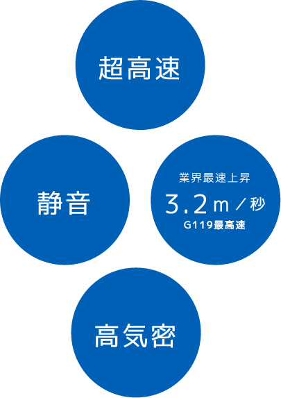 3.2m/秒の業界最速上昇、0.7m/秒の安全速度下降