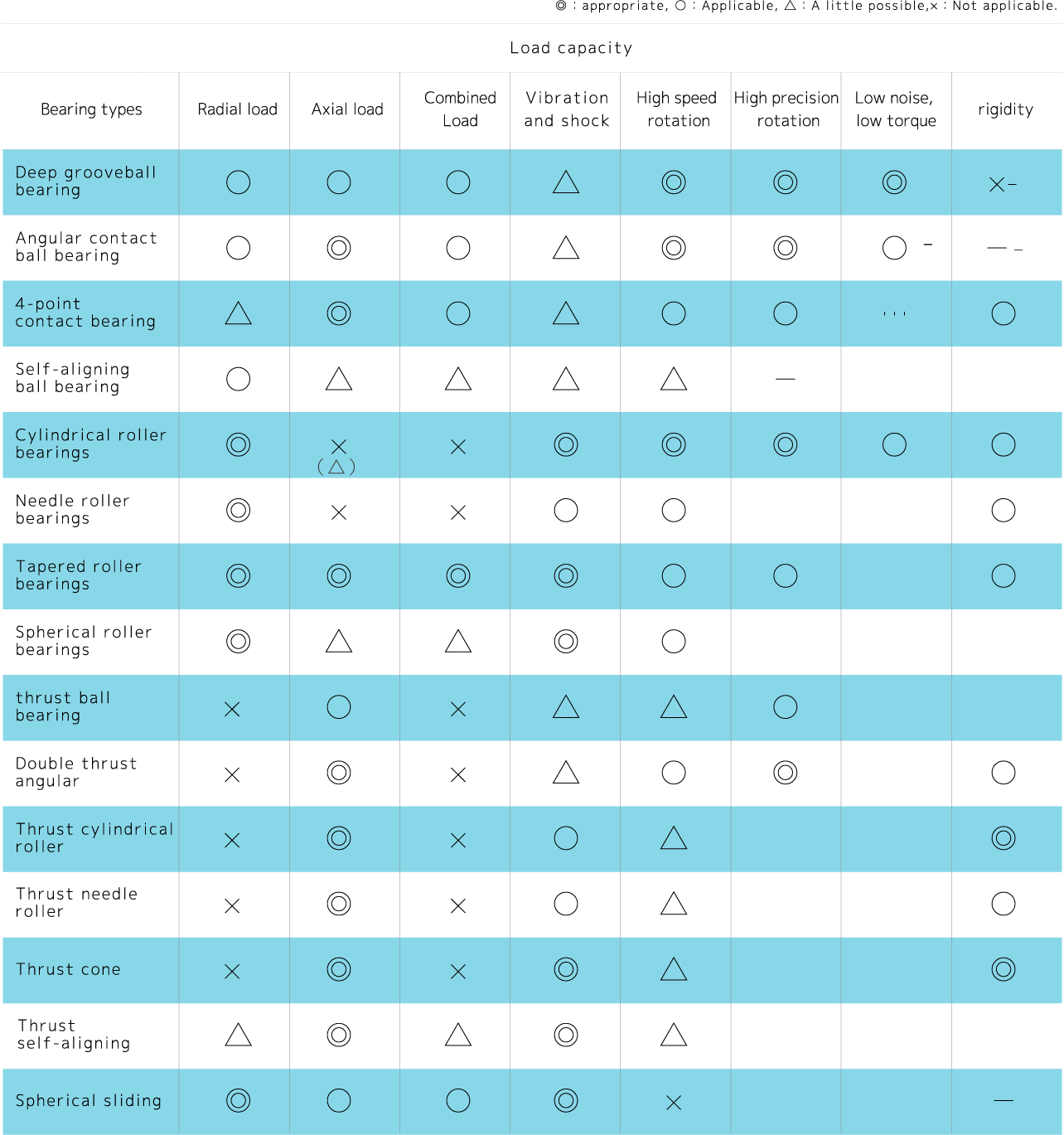 “Radial bearing” = A bearing that mainly receives radial loads (loads perpendicular to the axial direction)